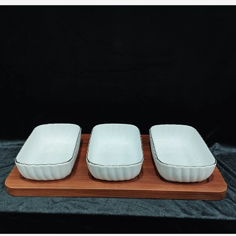 اردوخوری مستطیل موج 3 خانه خط طلا 328