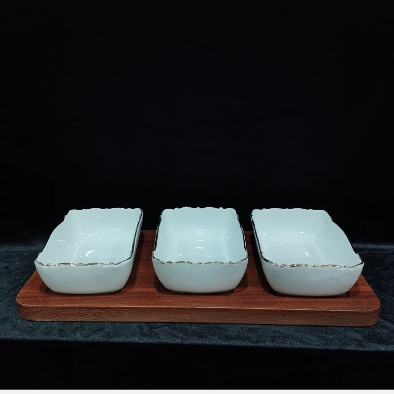 اردوخوری 3 خانه مربع لارن خط طلا لیمون چینی