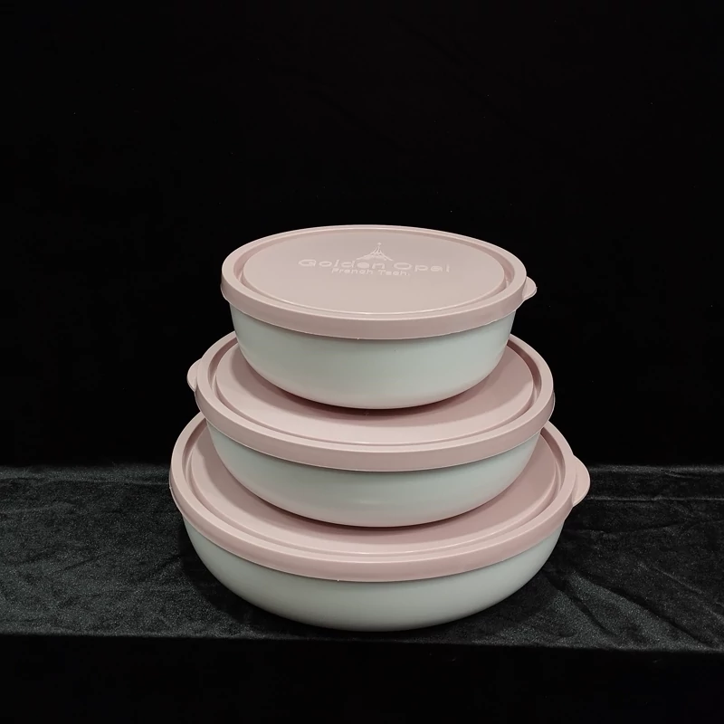 سه تابه گرد درب دار گلدن اپال سفید درب صورتی