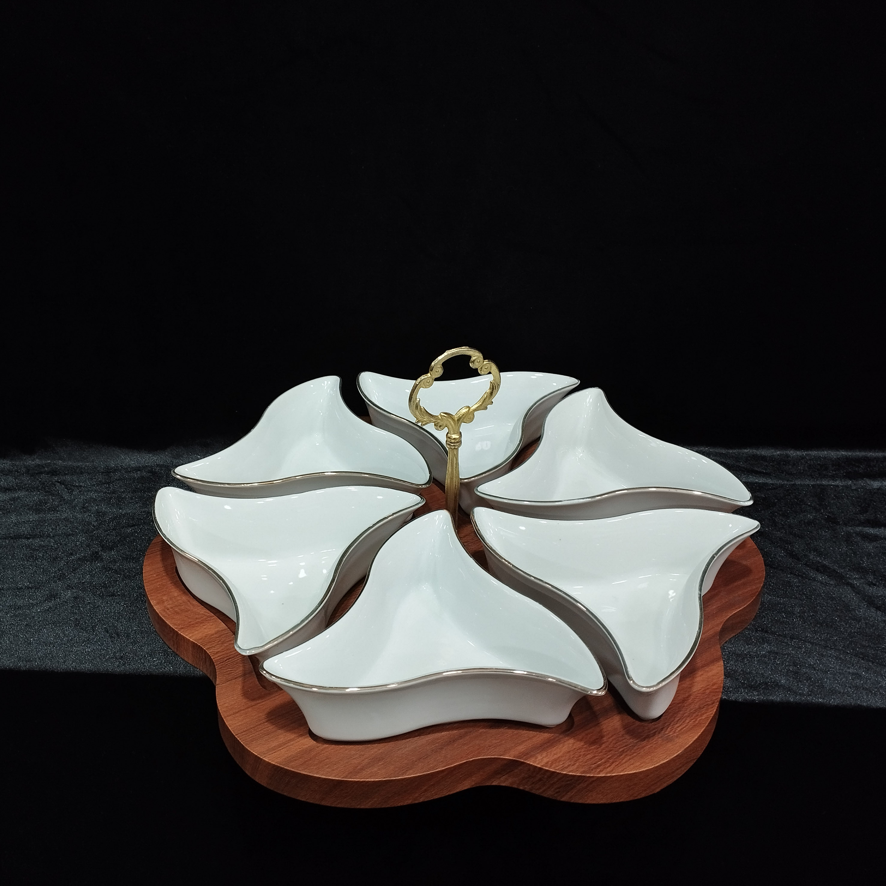 اردوخوری برگ 5 خانه خط طلا لیمون چینی