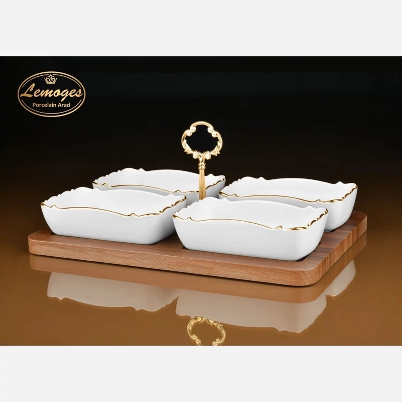 اردوخوری مستطیل موج 4 خانه خط طلا لیمون