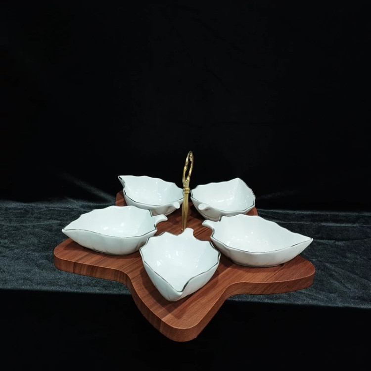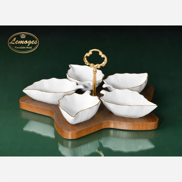 اردوخوری برگ 5 خانه خط طلا لیمون چینی