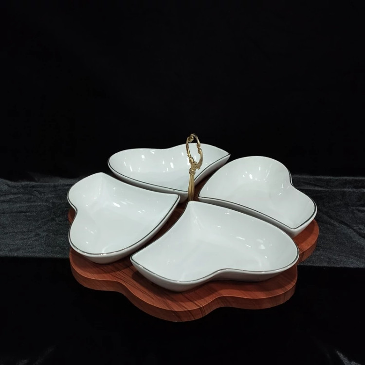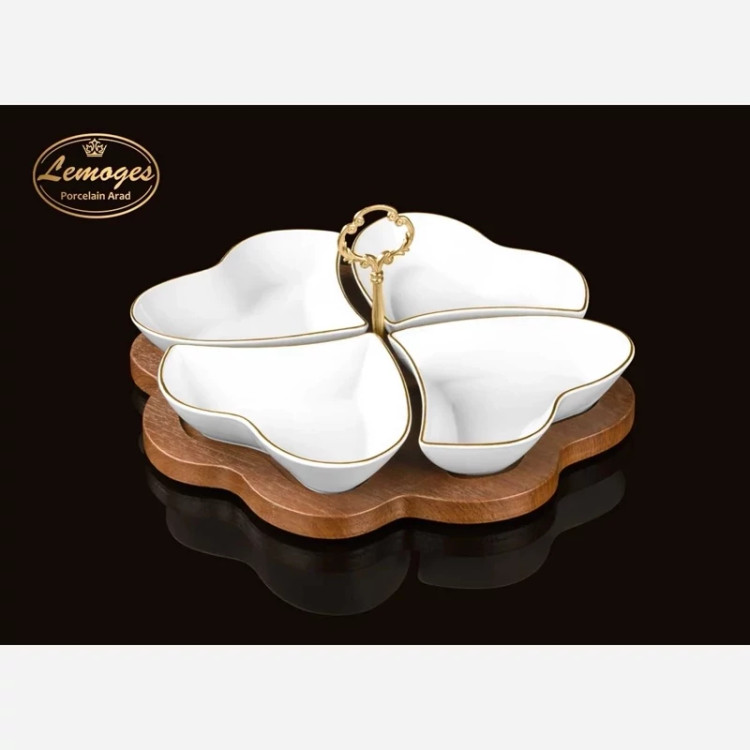 اردوخوری قلبی 4 خانه خط طلا لیمون چینی