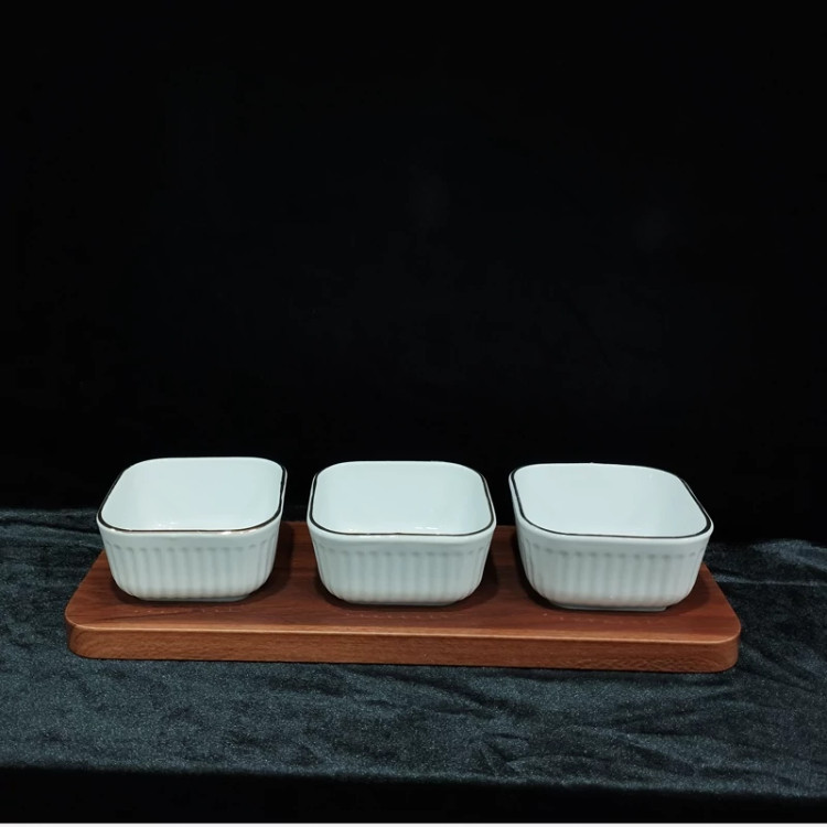 اردوخوری 3 خانه مربع لارن خط طلا لیمون چینی